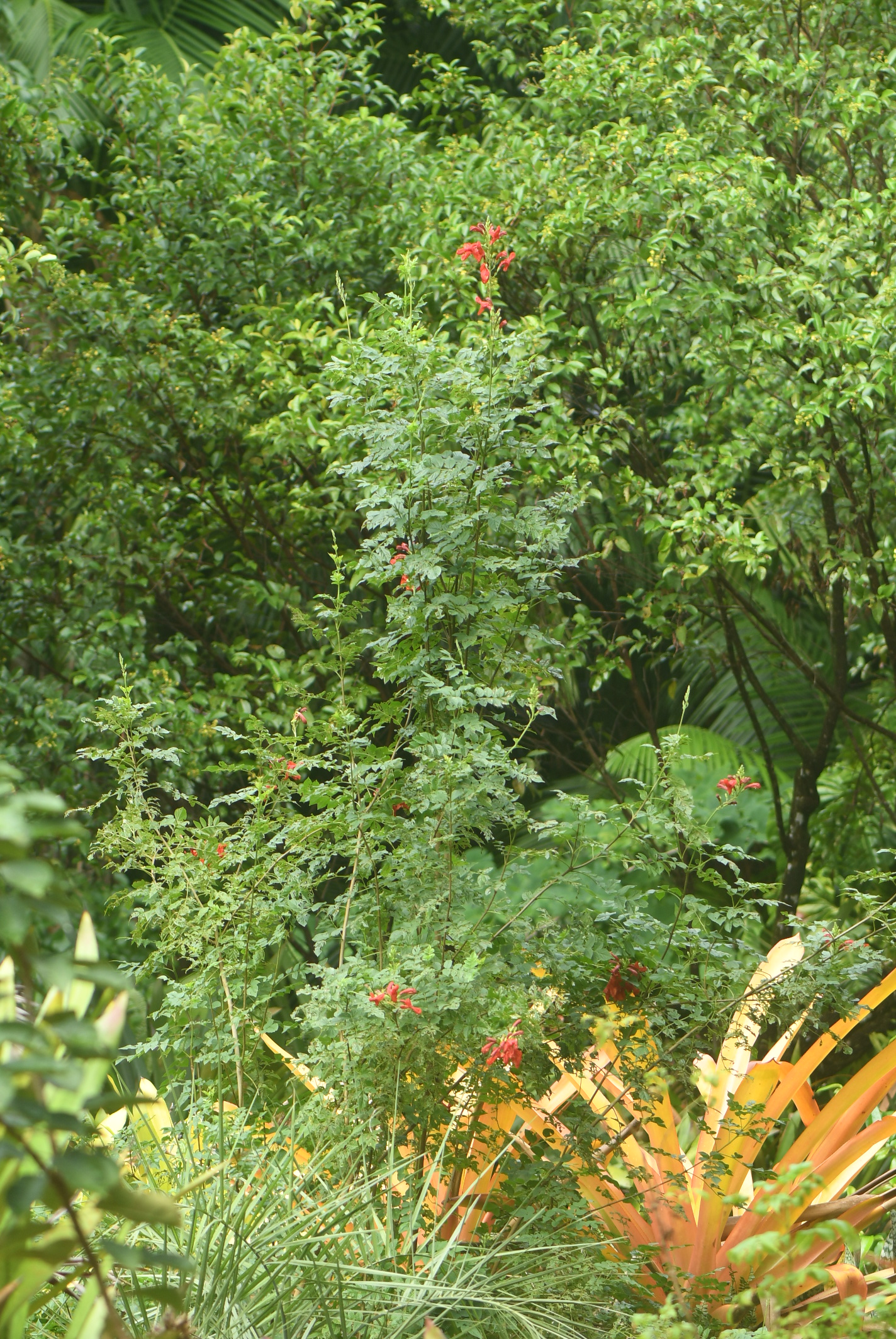 Cette espèce arbustive, aux floraisons éclatantes en grappes d'un rouge vif, reste curieusement rare dans les jardins de Guyane. La plante peut atteindre jusqu'à 4 mètres de hauteur et présente un feuillage vert foncé qui contraste joliment avec la couleur intense de ses fleurs. En plus de sa beauté,...