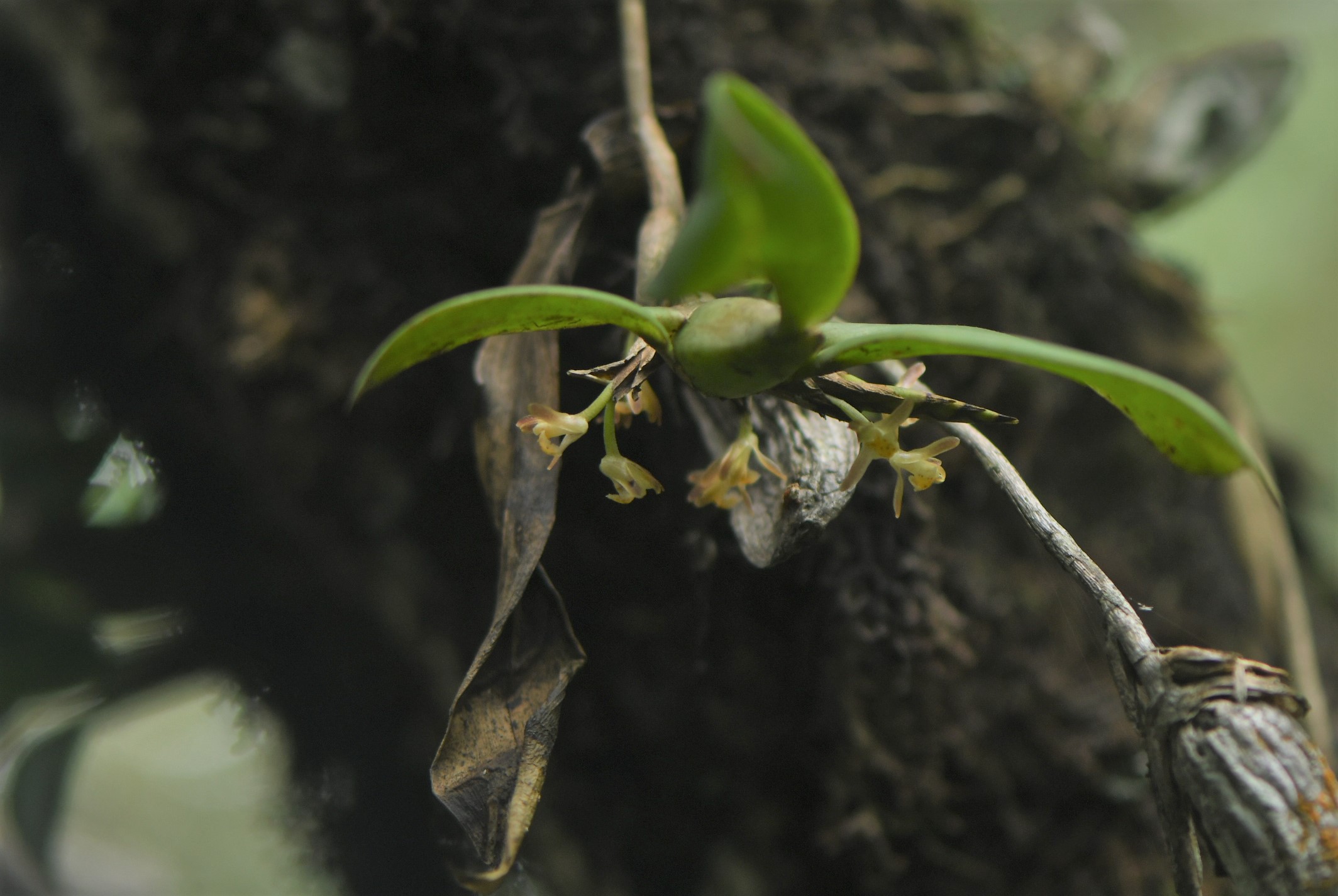 Cette plante lithophyte, plus rarement épiphyte, de taille moyenne et peu commune, est observée de manière très localisée dans le nord-ouest, le centre et le sud-ouest du département. Cette espèce apprécie particulièrement les forêts claires de transition sur dalles rocheuses, en bordure d’inselbergs ou de savanes-roches. Les fleurs s’épanouissent...